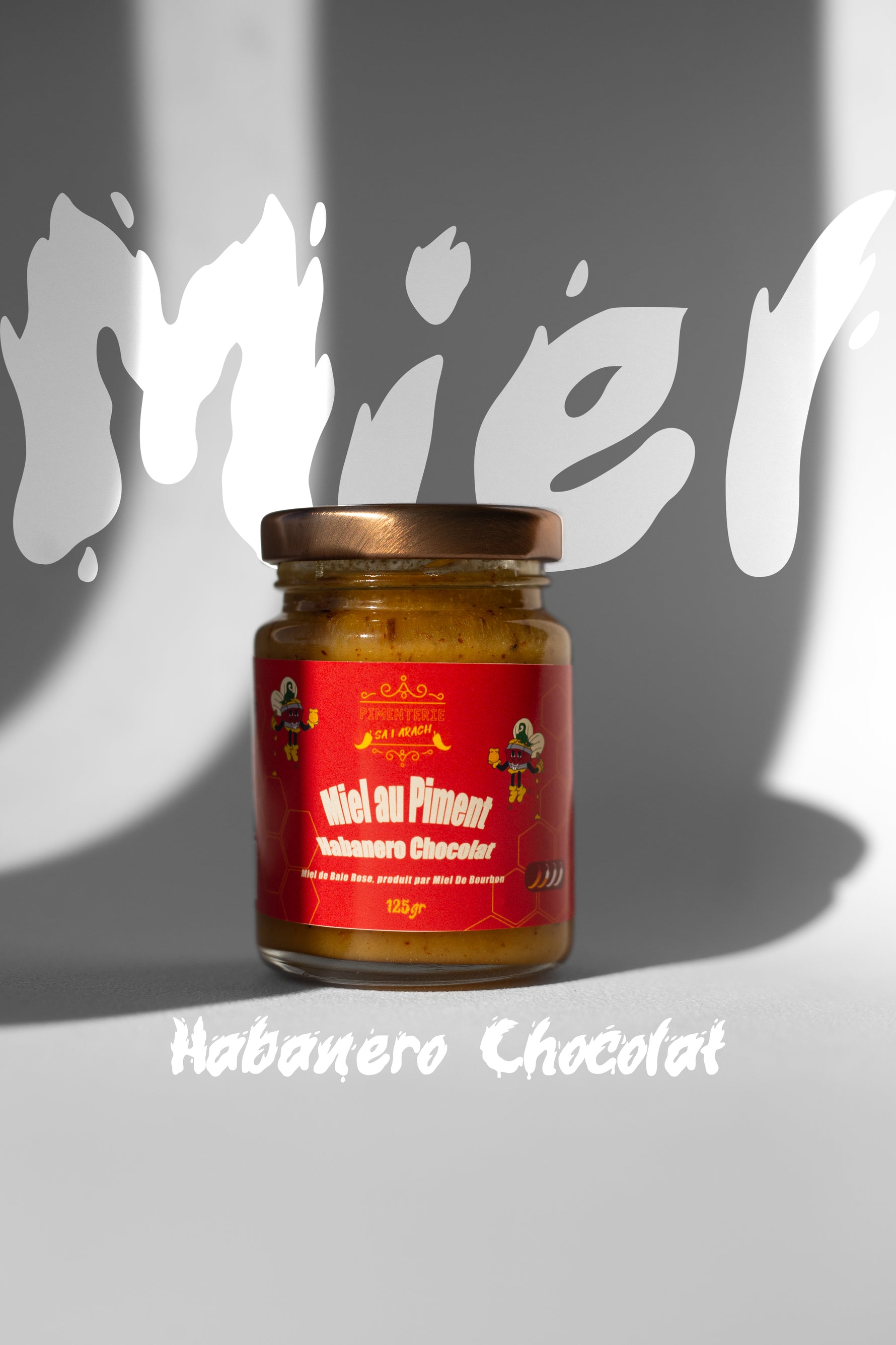 Ingrédients: miel de baie rose biologique, piment habanero chocolat séché.